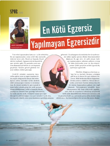 tum. Bu süreçte anladım ki; spor yapmak is- de üzerine kapanmaların gelmesi size engel